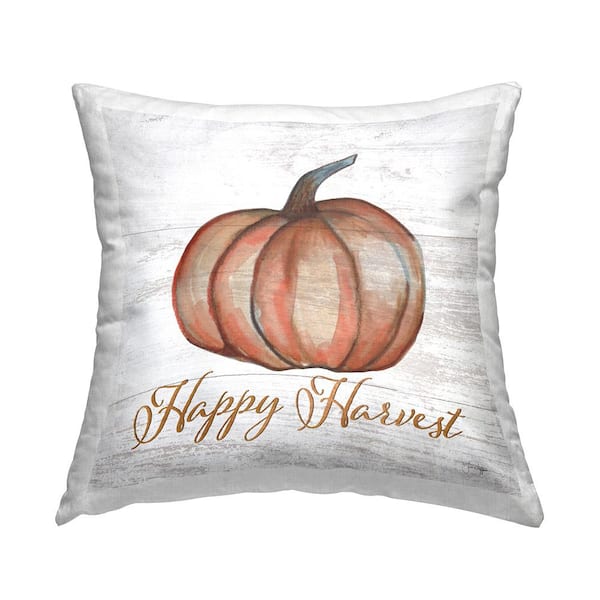 Happy Harvest Rustic Pumpkin Orange Print Polyester 18in. X 18in. Throw Pillow