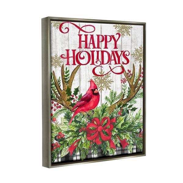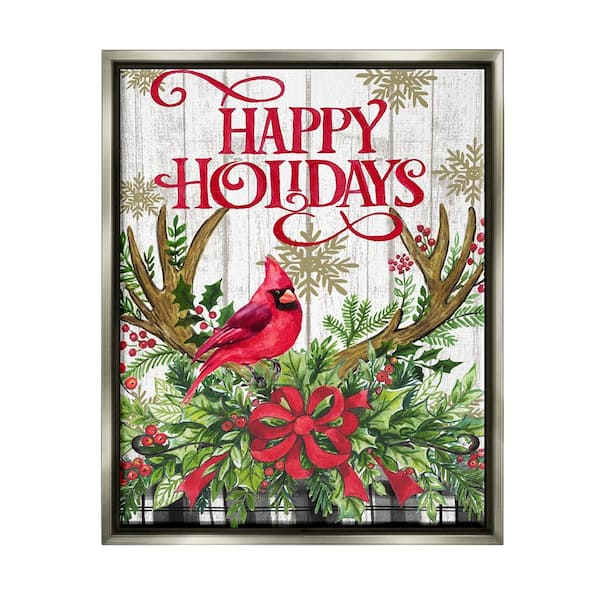 Happy Holidays Cardinal 1-Piece Floater Frame Graphic Print Animal Poster Art Print 21 in. x 17 in.