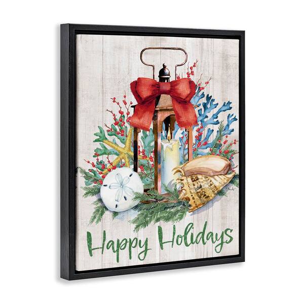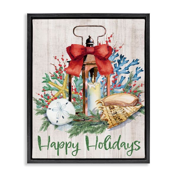 Happy Holidays Nautical Lantern by Paul Brent Black Floater Frame Typography Graphic Art Print 21 in. x 17 in.