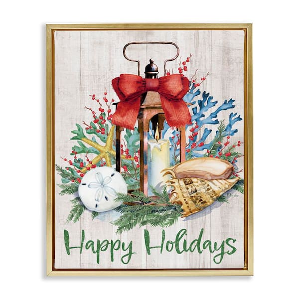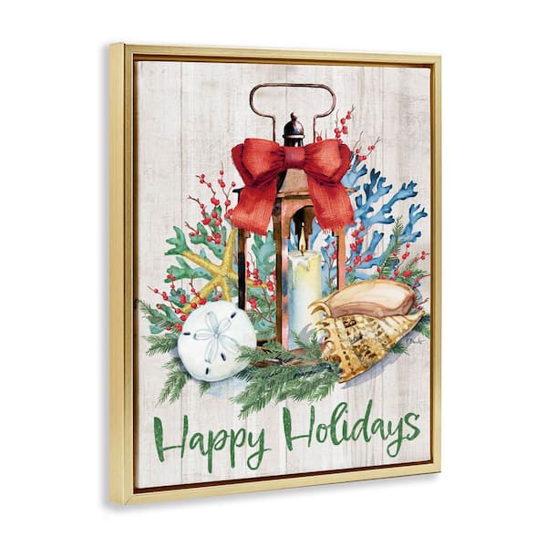 Happy Holidays Nautical Lantern by Paul Brent Gold Floater Frame Typography Graphic Art Print 31 in. x 25 in.
