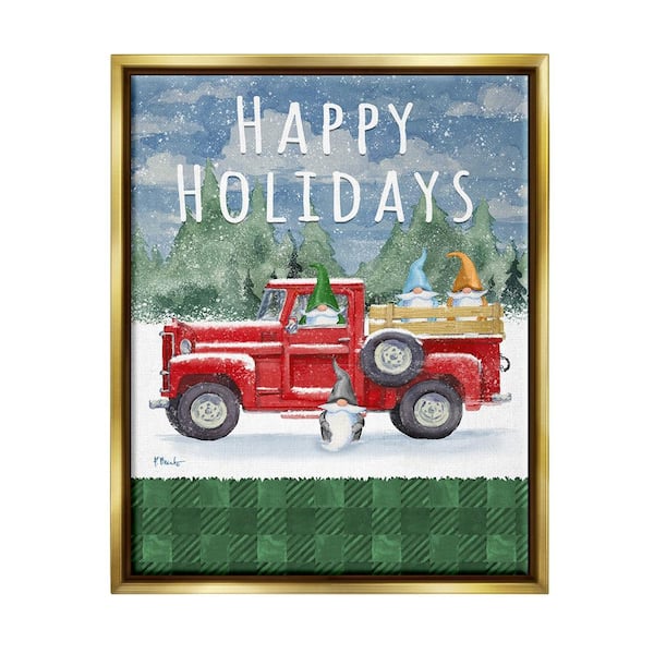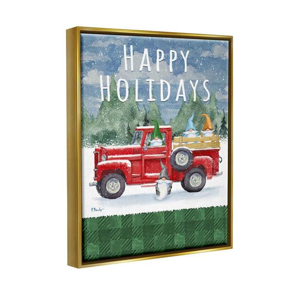Happy Holidays Truck by Paul Brent 1-Piece Floater Frame Graphic Print Travel Poster Art Print 31 in. x 25 in.