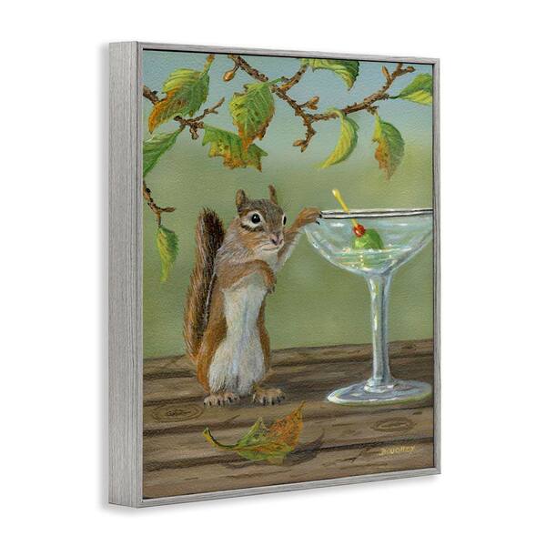 Happy Hour Chipmunk by Terry Doughty Gray Framed Food Giclee Art Print 30 in. x 24 in.