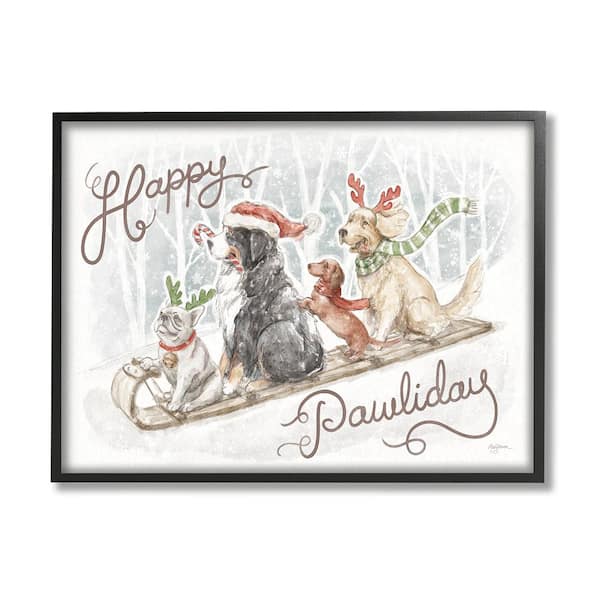 Happy Pawliday Dogs by Mary Urban 1-Piece Framed Graphic Print Animal Poster Art Print 20 in. x 16 in.