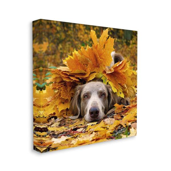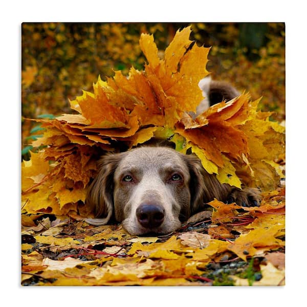 Happy Puppy Autumn Foliage by Lil' Rue Unframed Graphic Animal Art Print 36 in. x 36 in.