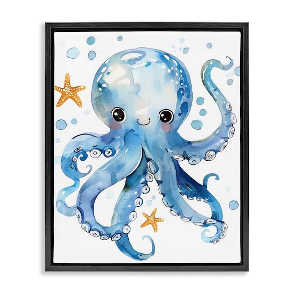 Happy Smile Octopus by Franklyn Gregory Black Floater Frame Animal Graphic Art Print 21 in. x 17 in.