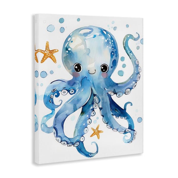 Happy Smile Octopus by Franklyn Gregory Unframed Animal Graphic Art Print 48 in. x 36 in.