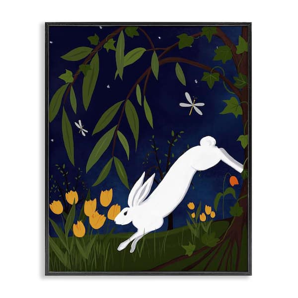 Hare in Night Forest by Michelle Ingari Designs Black Framed Animal Giclee Art Print 14 in. x 11 in.