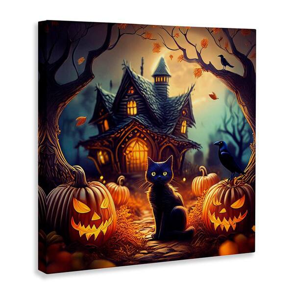 Haunted House and Black Cat by Alina Georgescu Unframed Animal Graphic Art Print 30 in. x 30 in.