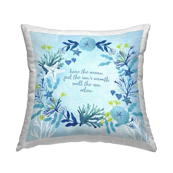 Hear The Ocean and Relax Blue Square Outdoor Throw Pillow