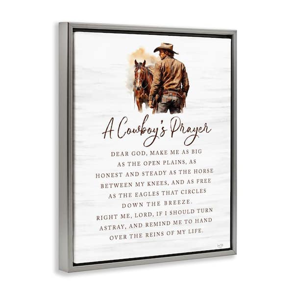 Heartfelt Cowboy's Prayer by Lux + Me Designs Gray Floater Frame Religious Graphic Art Print 31 in. x 25 in.