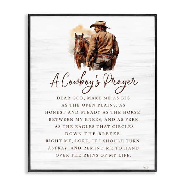 Heartfelt Cowboy's Prayer by Lux Plus Me Designs Black Framed Religious Giclee Art Print 14 in. x 11 in.