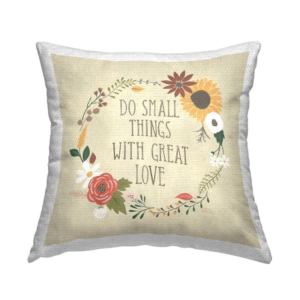 Heartwarming Great Love Quote Floral Border Tan Square Outdoor Throw Pillow