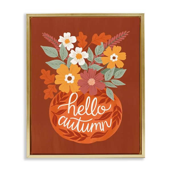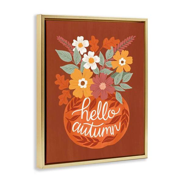 Hello Autumn Earthy Bouquet by Taylor Shannon Designs Gold Floater Frame Nature Graphic Art Print 31 in. x 25 in.