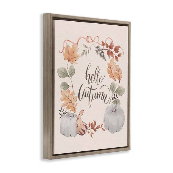 Hello Autumn with Garland by Andrea Jasid Grassi Brown Floater Frame Animal Graphic Art Print 21 in. x 17 in.