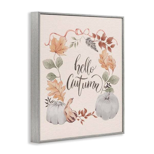 Hello Autumn with Garland by Andrea Jasid Grassi Gray Framed Animal Giclee Art Print 30 in. x 24 in.