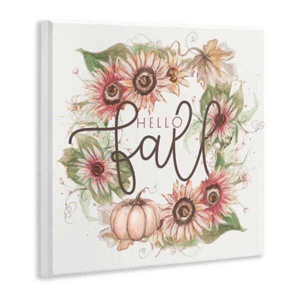 Hello Fall Autumn Greeting Floral Pumpkin Wreath by Patricia Pinto Unframed Graphic Nature Art Print 12 in. x 12 in.