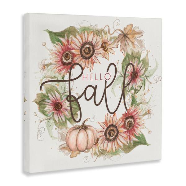 Hello Fall Autumn Greeting Floral Pumpkin Wreath by Patricia Pinto Unframed Graphic Nature Art Print 17 in. x 17 in.