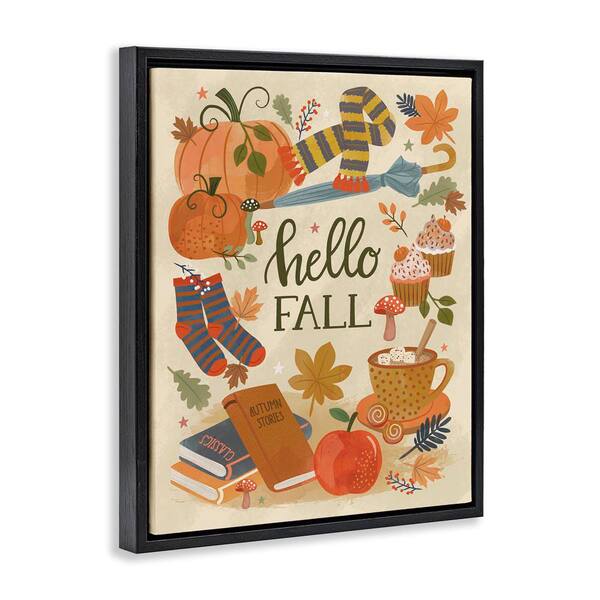 Hello Fall Cozy Autumn Items by Lisa Perry Whitebutton Black Floater Frame Graphic Typography Art Print 31 in. x 25 in.