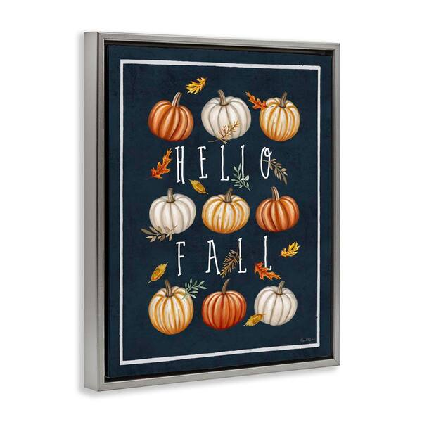 Hello Fall Mixed Pumpkins by Elizabeth Tyndall Gray Floater Frame Graphic Typography Art Print 21 in. x 17 in.