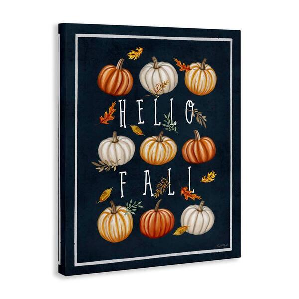 Hello Fall Mixed Pumpkins by Elizabeth Tyndall Unframed Graphic Typography Art Print 36 in. x 48 in.