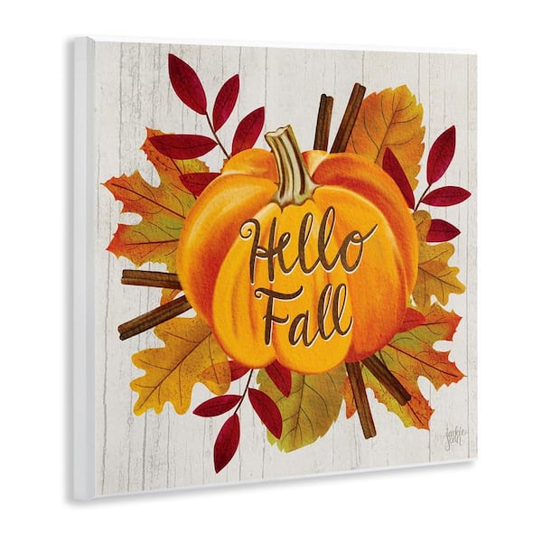 Hello Fall Sentiment Pumpkin Autumn Tree Leaves by Jackie Quigley Unframed Graphic Country Art Print 12 in. x 12 in.