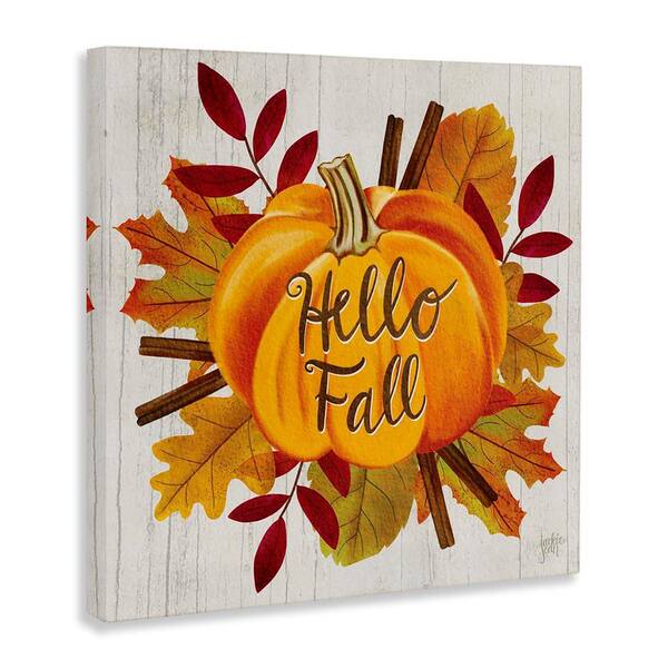Hello Fall Sentiment Pumpkin Autumn Tree Leaves by Jackie Quigley Unframed Graphic Country Art Print 24 in. x 24 in.