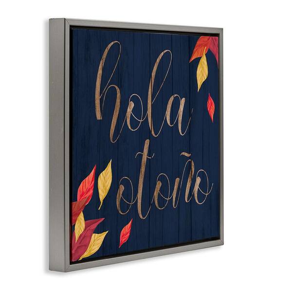 Hello Fall with Leaves by Lil' Rue Gray Floater Frame Abstract Graphic Art Print 25 in. x 25 in.