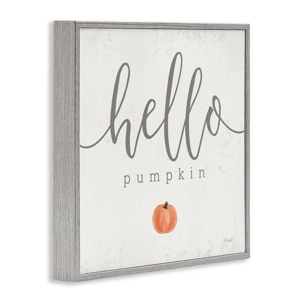Hello Pumpkin Fall Greeting by Kate Sherrill Gray Framed Graphic Food Art Print 24 in. x 24 in.