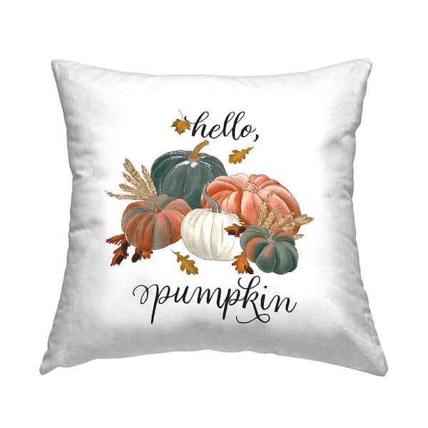 Hello Pumpkin Seasonal Autumn Wheat Botanicals Orange Print Polyester 18in. X 18in. Throw Pillow