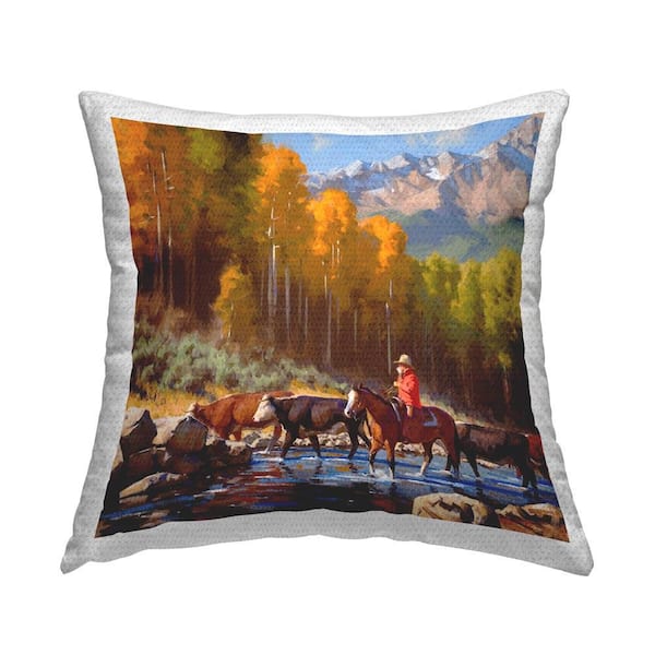 Herding Cattle Landscape Outdoor Printed Throw Pillow by Jimmy Dyer