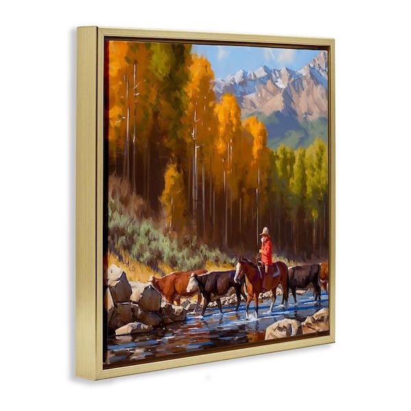 Herding Cattle Through Stream by Jimmy Dyer 1 Piece Floater Frame Graphic Print Nature Poster Art Print 18 in. x 18 in.
