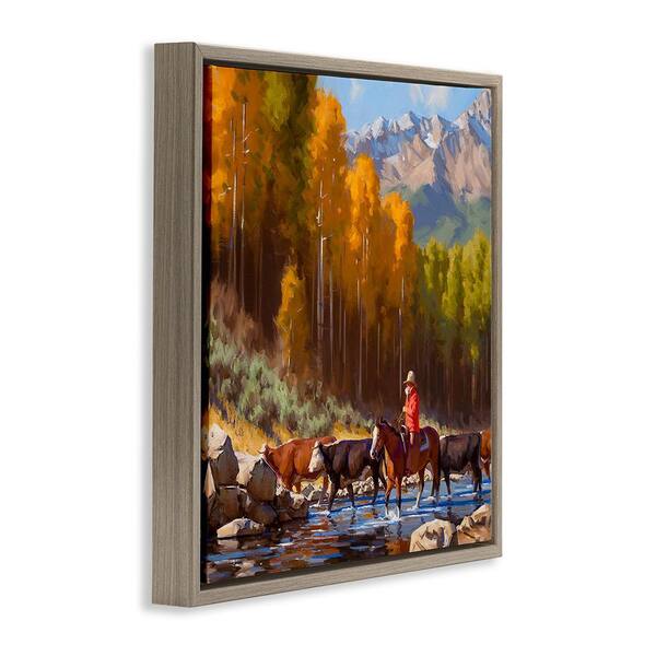 Herding Cattle Through Stream by Jimmy Dyer 1 Piece Floater Frame Graphic Print Nature Poster Art Print 25 in. x 25 in.