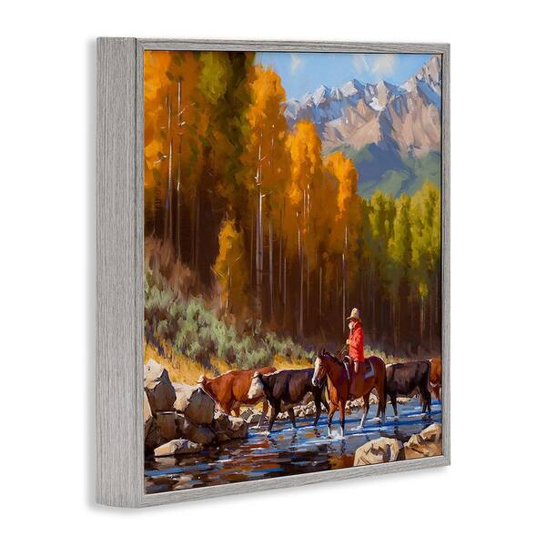 Herding Cattle Through Stream by Jimmy Dyer 1-Piece Framed Graphic Print Nature Poster Art Print 24 in. x 24 in.