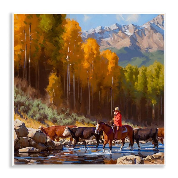 Herding Cattle Through Stream by Jimmy Dyer 1-Piece Unframed Graphic Print Nature Poster Art Print 12 in. x 12 in.