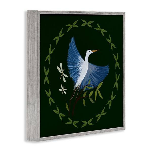 Heron and Dragonflies Wreath by Michelle Ingari Designs Gray Framed Animal Giclee Art Print 12 in. x 12 in.