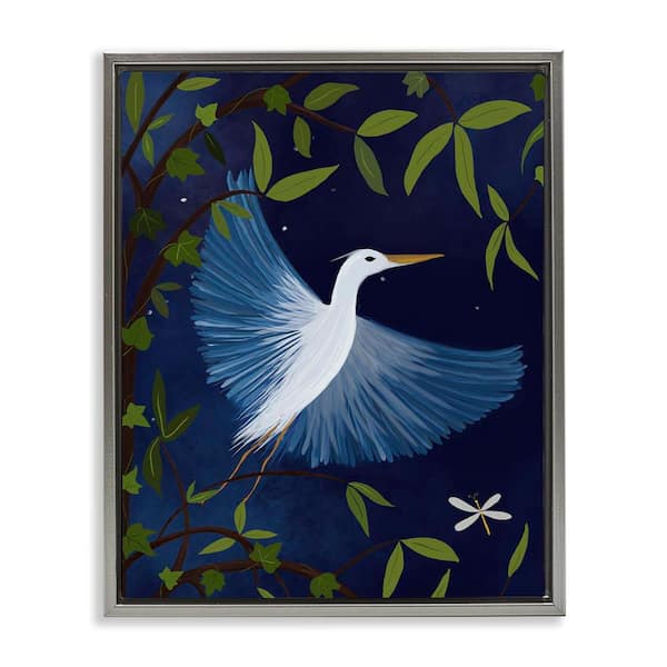 Heron in Night Forest by Michelle Ingari Designs Gray Floater Frame Animal Graphic Art Print 21 in. x 17 in.
