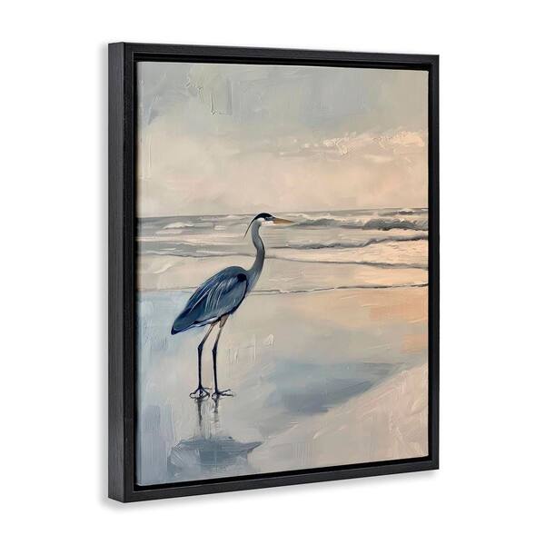 Heron on Classic Coast by Petal Prints Design Black Floater Frame Coastal Graphic Art Print 31 in. x 25 in.