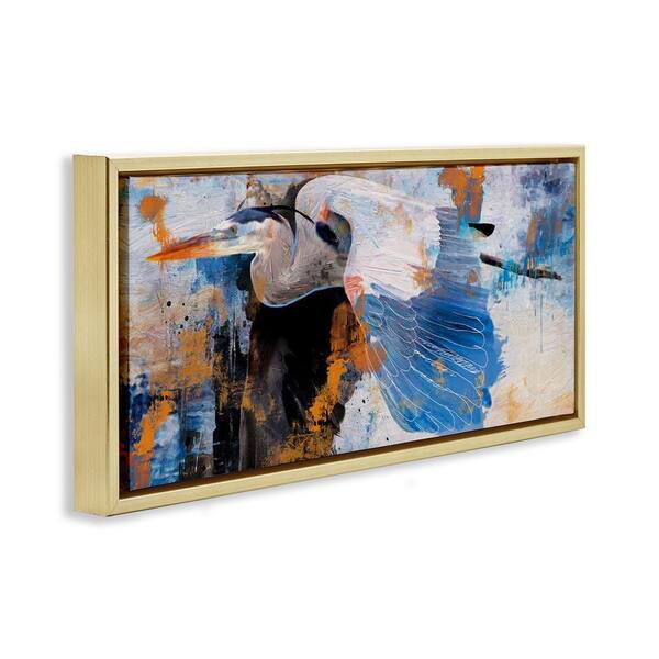 Heron with Abstract Splatter by Porter Hastings Gold Floater Frame Animal Graphic Art Print 14 in. x 31 in.