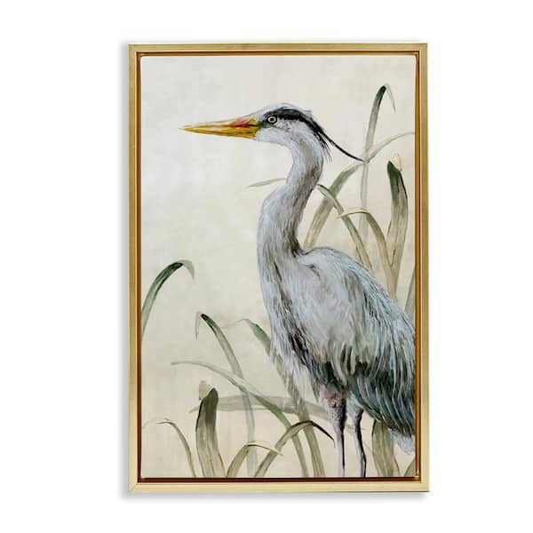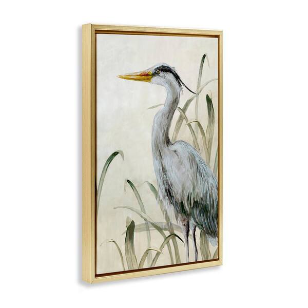 Heron with Traditional Grasses by Jacob Q Gold Floater Frame Animal Graphic Art Print 31 in. x 21 in.