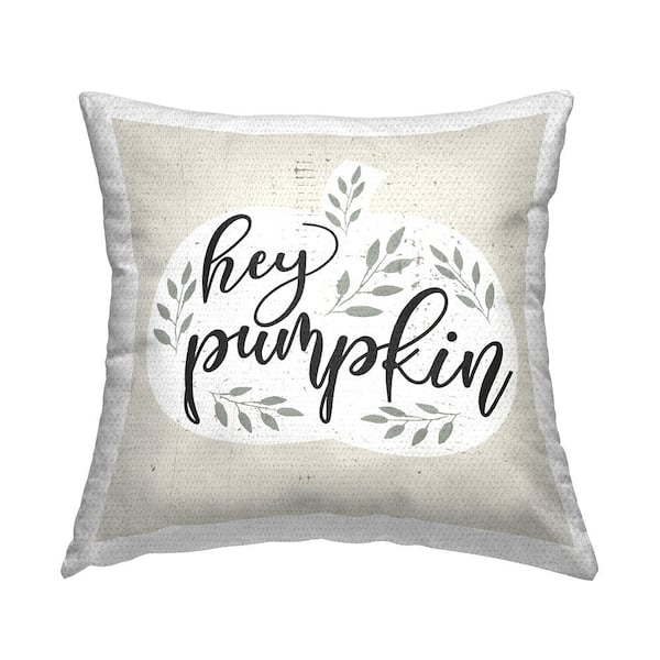 Hey Pumpkin Charming Botanical Silhouette Foliage Beige Square Outdoor Throw Pillow