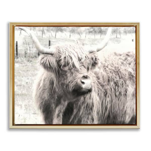 Highland Cow Gazing Portrait by Graffi tee Studios Gold Floater Frame Animal Graphic Art Print 25 in. x 31 in.