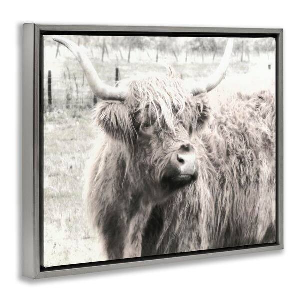 Highland Cow Gazing Portrait by Graffi tee Studios Gray Floater Frame Animal Graphic Art Print 25 in. x 31 in.