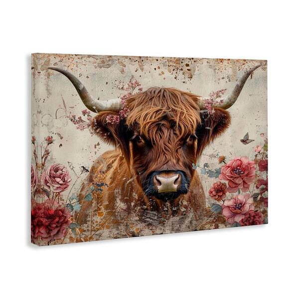 Highland Cow in Spring by LSR Design Studio Unframed Animal Graphic Art Print 30 in. x 45 in.