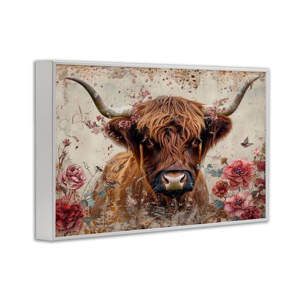 Highland Cow in Spring by LSR Design Studio White Framed Animal Giclee Art Print 16 in. x 24 in.