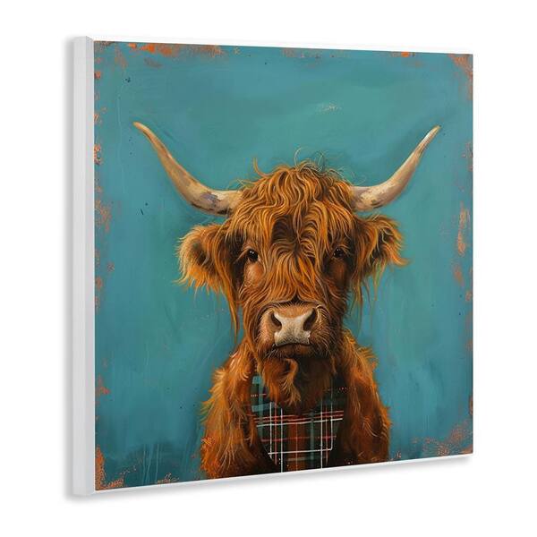 Highland Cow on Blue by LSR Design Studio Unframed Animal Graphic Art Print 12 in. x 12 in.