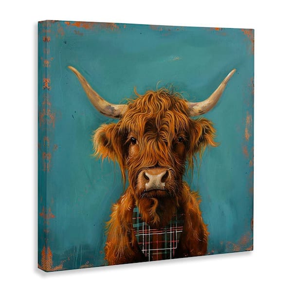 Highland Cow on Blue by LSR Design Studio Unframed Animal Graphic Art Print 36 in. x 36 in.
