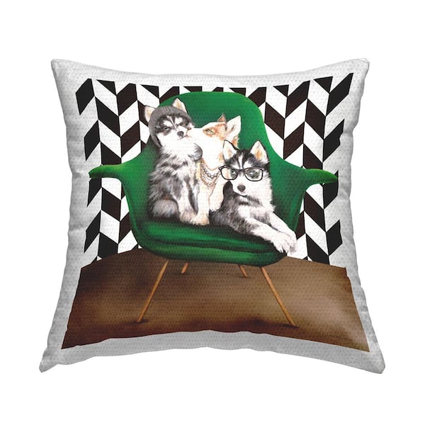 Hipster Dogs Green Mod Chair Chevron Pattern Green Square Outdoor Throw Pillow