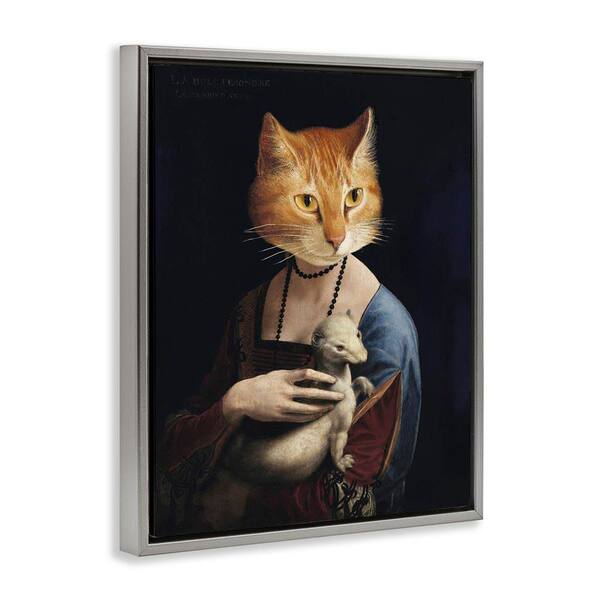Historical Portrait Cat by Alicia Longley Gray Floater Frame Abstract Graphic Art Print 21 in. x 17 in.