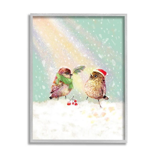 Holiday Birds Snowy Rainbow by Verbrugge Watercolor 1 Piece Framed Graphic Print Animal Poster Art Print 30 in. x 24 in.