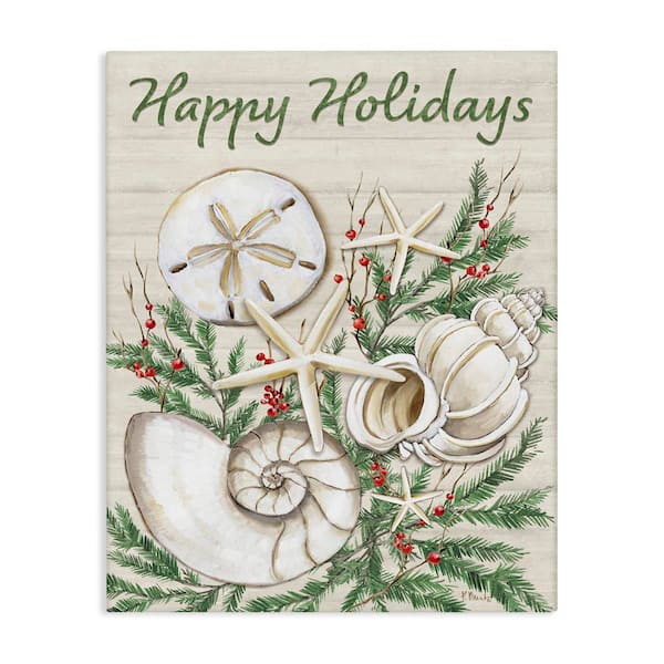 Holiday Seashells & Holly by Paul Brent Unframed Typography Graphic Art Print 40 in. x 30 in.